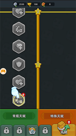 6、升级天赋可以加强角色属性,闯关到后面还有解锁装备等其它功能。