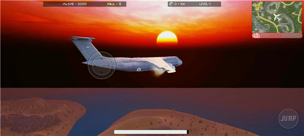 2、跳伞末开伞,视角拉平的话,可以保持125km速度,配合虚拟摇杆,可以尽量飞得远;