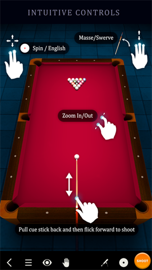 2、栩栩如生的游戏物理引擎:Pool Break Lite运用先进物理引擎,让游戏里台球的运动极为逼真,球的滚动、碰撞以及摩擦等细节都被精准模拟。如此一来,玩家能更真切地体会桌球游戏的乐趣,游戏的挑战性也随之提升。