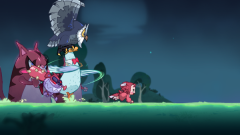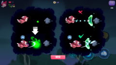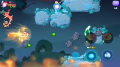 厌恶所有犬科动物(连小哞哩也不例外)的猫之森、被家中“霸王”——“鸭子大王”霸占的干涸池塘、遍布众多山羊与大牛的冲撞平原......你会跟着哞哩一同前往这些光怪陆离的地方,与盘踞在那里的怪物及 BOSS 展开激烈战斗,同时得留意飞行中的障碍物以及会自行变动的地图哟~