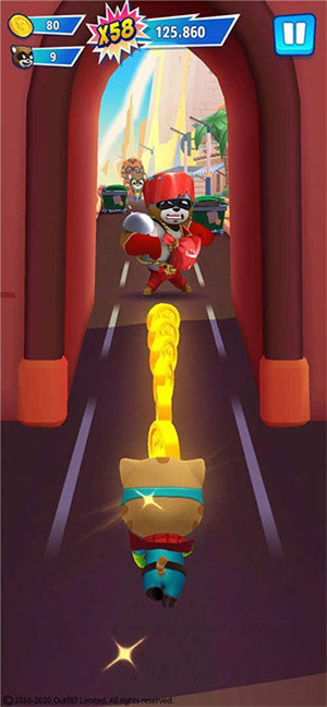 2、打败浣熊帮:除了收集金币和避开障碍,你还可以撞击浣熊来获取额外的奖励!