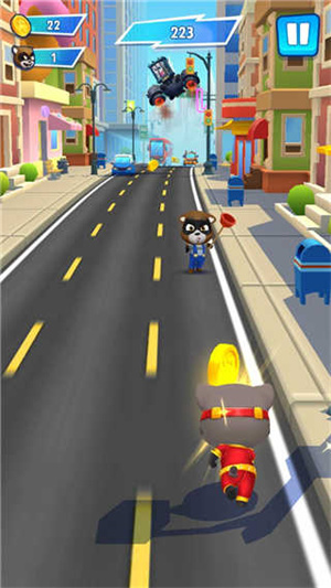 4、打败浣熊帮:除了收集金币和避开障碍,你还可以撞击浣熊来获取额外的奖励。