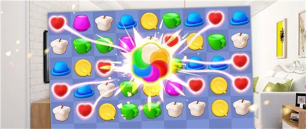 这款游戏运用了经典的三消换位操作方式,只需按住某个消除道具,与相邻的道具交换位置,当三个及以上相同的消除元素连成直线,就能实现消除。在游戏进行房屋整理时,大多由系统自动完成,无需过度在意操作流程。因此,大家可以简化建造环节,将更多注意力放在消除玩法上,对于建造部分,以欣赏的心态对待就好。