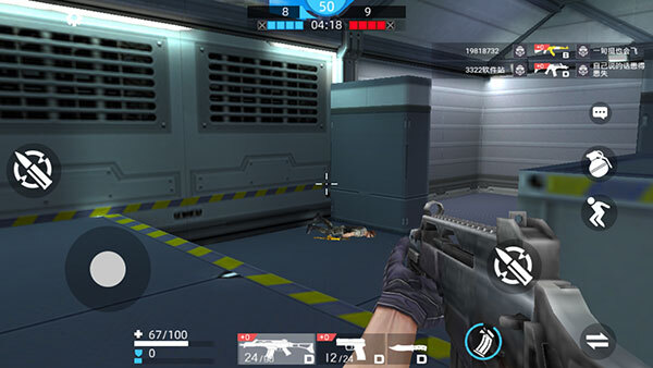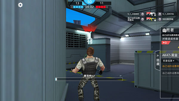 2、战斗开始后,左侧轮盘控制角色移动,右侧控制射击换弹等操作。