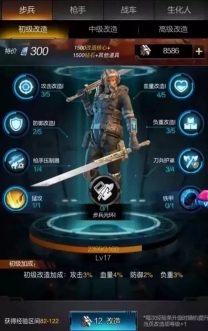 2. 每个兵种皆具备初级、中级以及高级这三种改造选项。当每种改造达到满级时,能够升级的技能存在差异,改造可从初级着手。当改造等级达到特定级别时,会激活兵种光环,该光环会全方位提升兵种属性。建议把所有兵种的12个改造同时提升到10级或者15级,之后再依据自身实际需求,着重将其中2 - 3个改造提升至满级。