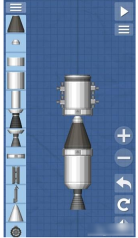 5、在鹰发动机下面的隔离器下方放一个长燃料箱和中燃料箱,在最下面加上鹰发动机;