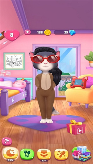 在《我的安吉拉2钻石版》里,玩家能够与安吉拉展开互动,像给她喂食、轻轻抚摸、跟她交谈之类,以此提升她的亲密度与快乐度;还能对安吉拉的学习与生活做出安排,塑造她的性格,培养她的技能,让她成长为一只聪慧可爱的猫咪;另外,玩家可以购买物品并装饰安吉拉的家园,为她打造一个更为舒适且温馨的生活环境。