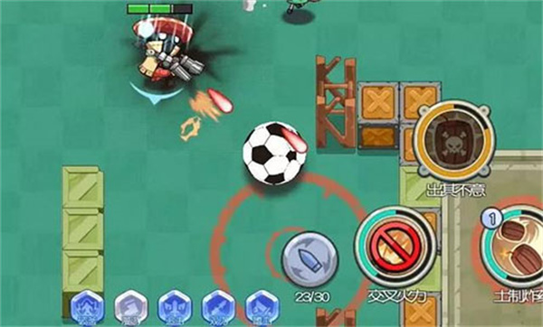 在踢球过程中,因为双方都会为了将球踢进对方球门而去接近足球,而荒漠枪手可以将炸药放在敌方踢球的必经之路上,会使对面在踢球被眩晕与不踢之间选择。