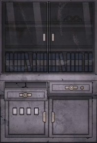 8、打开带有已知可视图表符号的机柜下的密码锁,获取手术室钥匙和金属片3。
