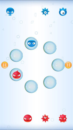 其实这款游戏小编玩了几遍之后才弄清楚玩法,请不要鄙视小编的智商,这款游戏分为左边和右边,玩家就是要在最短的时间内将对方的颜色细菌点成我方的颜色,在对方的细菌小球将我方的颜色细菌侵蚀之前点好才能获胜哦!
