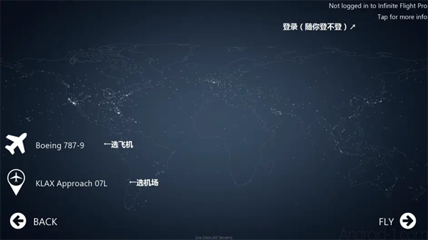 1、若选项带有飞机图,即为飞机选项,你可从中选择自己要驾驶的飞机。若飞机图带有绿色箭头,表明该飞机可下载,点击后,在飞机图下方找到“…free Dow…”并点击,即可完成下载。Back为返回键。