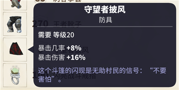 选择游侠20级披风,属性:暴击几率+8%,暴击伤害+16%。