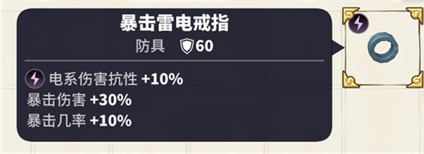 很早就可以做的戒指,属性:暴击伤害+30%,暴击几率+10%。