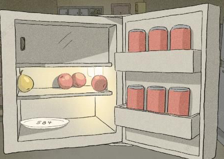 1、点击场景1大厅的冰箱门,可以找到一个写有数字的盘子