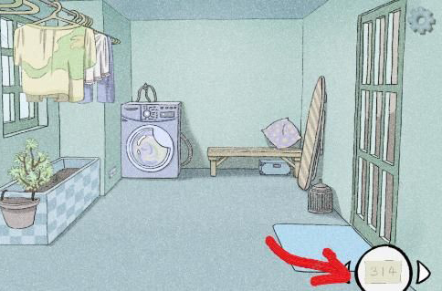 3、点击场景3阳台里的洗衣机,会找到一张写有数字的纸条