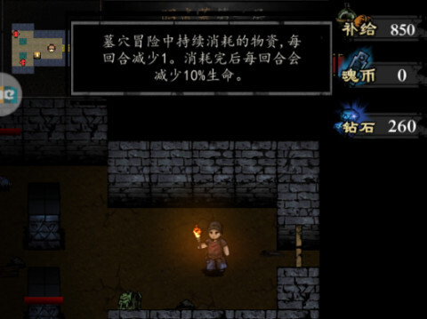 1、在下墓倒斗时,“补给”数值至关重要。前文提到,该游戏为回合制游戏,补给数值即为本局游戏的最大回合数。一旦补给消耗殆尽,每回合便会损失10%的生命值,这基本等同于宣告游戏角色面临绝境。当然,副本关卡中会有能够恢复补给的道具,稳妥起见,记得随时储备1 - 2个补给品。