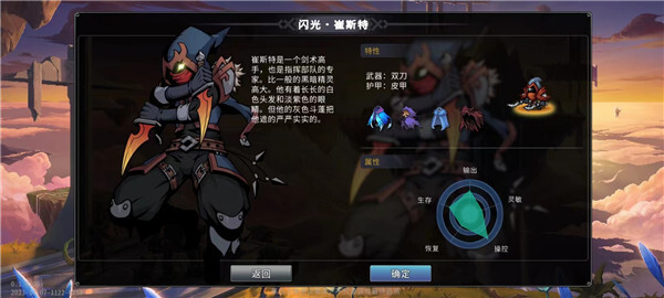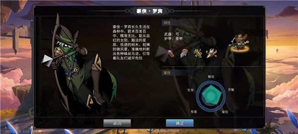 游侠:刺客,走闪避和暴击路线,低血低防高输出,射程远,有隐身。新手可选。
