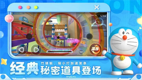 《哆啦A梦飞车》最新版本,由藤子·F·不二雄制作公司给予官方正版授权,以世界级热门IP《哆啦A梦》为蓝本精心打造,是一款3D休闲赛车竞速类手游。它依托原作剧情构建,不仅完整延续了原作漫画的日式卡通风格,还运用先进的Unity3D引擎技术对游戏进行升级与优化,塑造出可与端游相媲美的高清游戏画质,致力于为玩家呈现视觉上的极致体验!