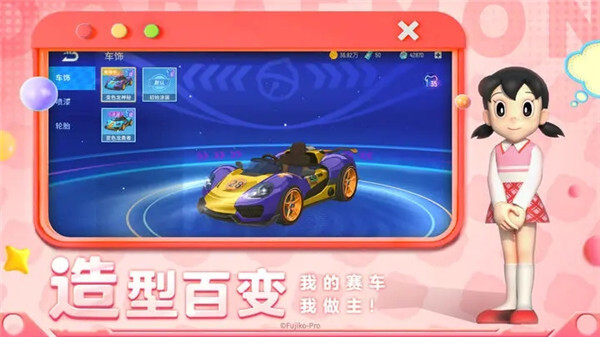 游戏中设有兼具奇幻与趣味的丰富赛道,多种地图供玩家随心挑选。这里面既有太空旅行、未来都市这类奇幻风格的地图,也有大雄家后院这样的经典场景,甚至北京、上海、广州等城市地标也在游戏里得以重现。玩家能够驾驶赛车一路尽情漂移,沉浸式领略各异的赛道风光。