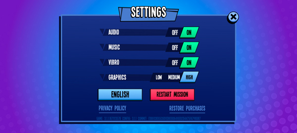 2、在游戏正式开始前,点击左上角设置按钮,在这里可以调整游戏音效、画质、语言等,目前手游只有英文没有中文