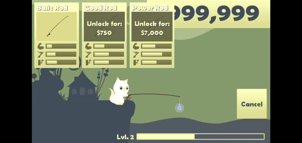 猫咪升级与新船只购置:在钓鱼过程中获取金币和经验值,以此来升级猫咪技能并购买新船只。猫咪升级有助于提升钓鱼能力,新船只则能带你驶向更远之处,探索更多种类的鱼类与不同的环境。