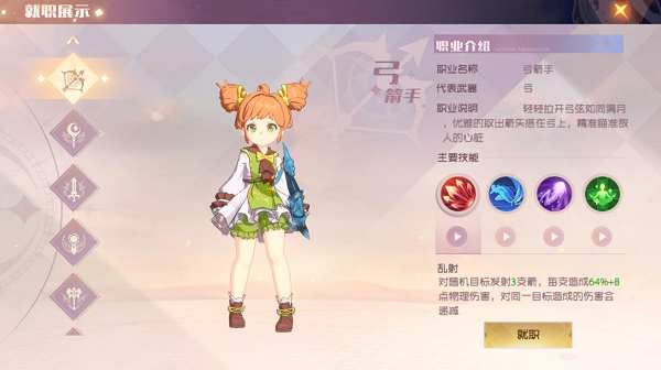 乱射:随机释放弓箭攻击,每次升段增加一个弓箭。