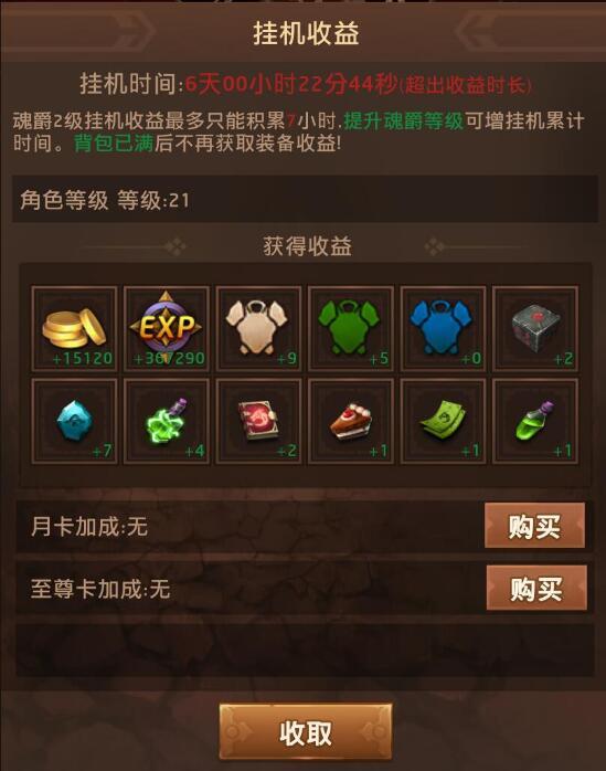 玩家离线和在线期间都可领取挂机收益,同样也能提供经验加成,升级速度也是很快的
