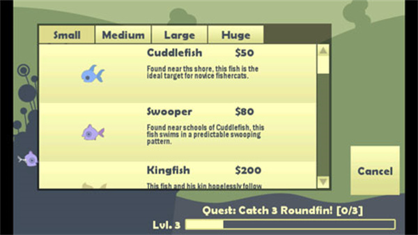 《小猫钓鱼》中文版是一款风格质朴却极具耐玩性的休闲钓鱼游戏。其画风独具新意,玩家将化身一只钟情钓鱼的小猫。游戏里有诸多不同种类的鱼等待收集,玩家还得自行对渔具进行升级,并熟知不同鱼类的习性,如此方能钓到形形色色的鱼,尽情感受休闲钓鱼带来的美妙节奏体验。