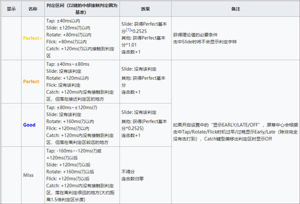 1、各谱面满分为1010000分,以Perfect判定为基准,各判定赋分比例为: