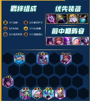 羁绊:7法师、3K/DA、2真实伤害、2秘术护卫