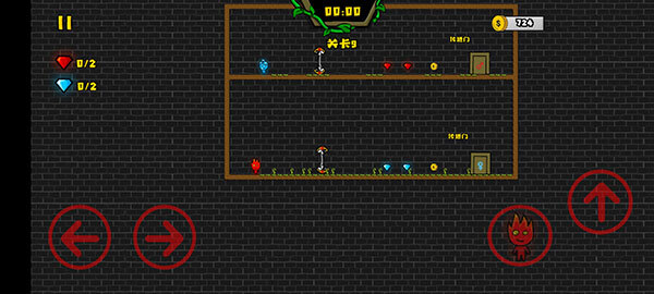 2.激烈的冒险竞技玩法,陷阱需要两个人只有两人配合才能完成,水火两个角色配合才能顺利通过关卡。