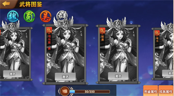图鉴系统:抽到不想要的卡牌怎么办,食之无味弃之可惜。没关系,在图鉴内激活消耗掉即可,可对当前上阵的全体武将进行属性加成,激活越多,加成越高~