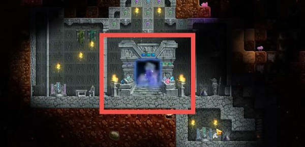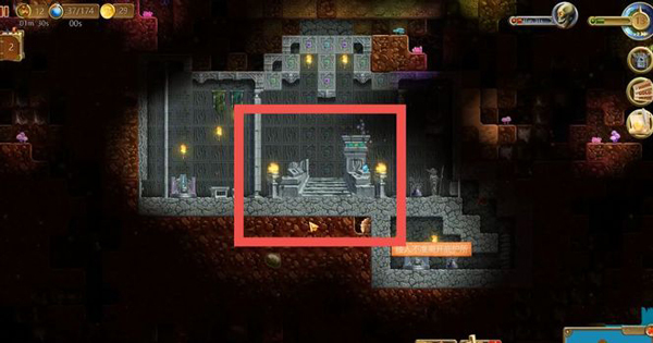 1、玩家需往地下挖掘,寻找一处被石头环绕,整体呈四四方方,四周皆为石头的区域,其中有一个无法挖掉的石台,此石台便是过关传送门的底座。