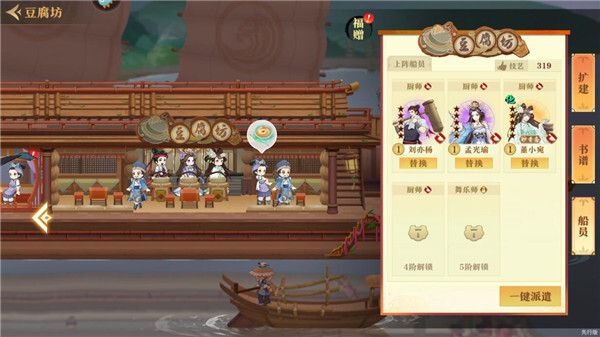 别瞧开局仅有一艘船,可玩法丰富多样。玩家能够借助主线任务解锁形形色色的坊间,每个坊间都具备独特作用。就像解锁豆腐坊间,就能吸引爱吃豆腐的客人;开启糖水铺,又能招揽钟情糖水的客人。而且每增添一个坊间,都能让收入显著提升呢。