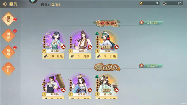 5、进入到船员界面进行升级,升级用到的道具可以通过“州府”副本获取