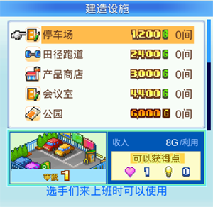 前期有好友,基本无脑推,不需要休息,所以设施用的不多,公园,便利店,这两个可以建。