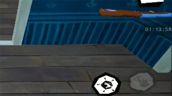 7、当拿到物品后,右下角会亮起一个全新的“投掷”按钮。点击此按钮,就能把手中的物品扔出去。这些物品用途多样,既能够放置在门口,阻挡邻居开门;又可以当作垫脚石,若放在窗口位置,便能借助它从窗户跳进屋内。
