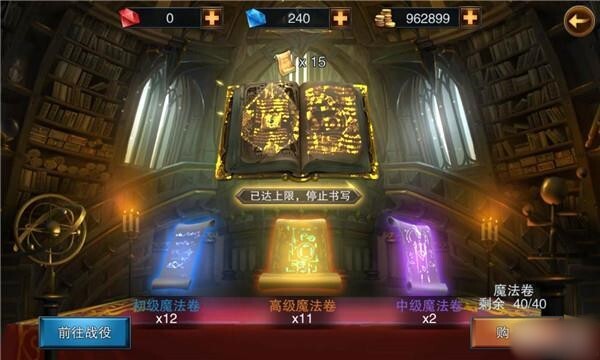 3每30分钟就能产出一张魔法卷轴,不过产出上限是40张。每天在产出达到上限之前,前往战役的最高副本把魔法卷轴用掉,这样就能获取大量经验值、装备以及金币,如此一来,就能保证装备和等级不落后于大多数玩家的进度。