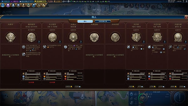 最后讲讲伟人。前期推荐大家获取大将军、大科学家这类伟人。要知道,伟人具有唯一性,一旦你拿到手,别人就无法再获取,而伟人需要积攒点数才能出现。点数的积累依靠区域加成,像军营能够增加大将军点数,商业区则增加大商人点数。要是能把伟人运用得当,体验会相当不错。前期多获取大科学家,能更多地触发尤里卡,从而比别人发展得更快。总而言之,还是得多去玩一玩,玩得多了自然就都明白了!