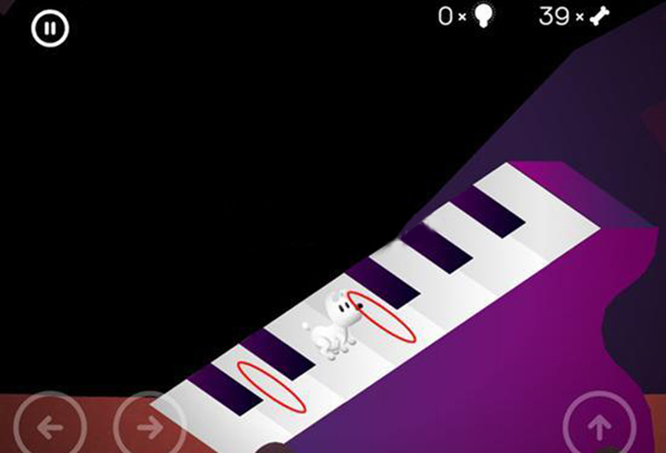 21、玩家注意不要碰到下图2个红圈的键位,否则在跳音符跳板的时候会出现某几个音符踏空掉下去