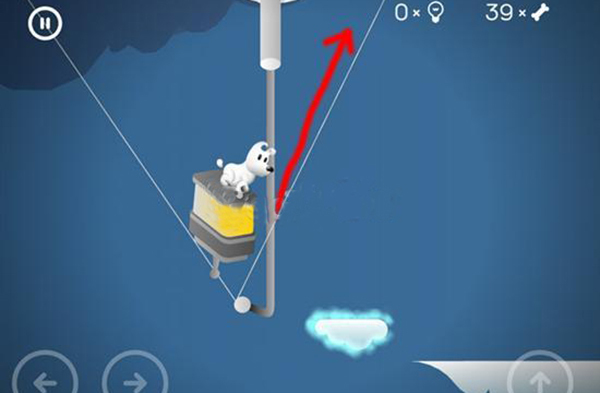 7、盒子会带狗狗到下图位置,当然如果玩家沿着下图红线向上移动就会拿到一个骨头