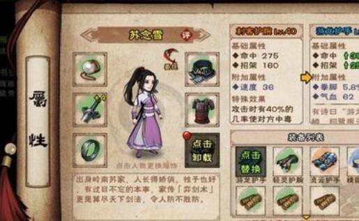 3、肉盾类型:将根骨属性加到超出正常需求许多!内息属性提升至接近满值!适当补充一些身法属性!臂力属性无需添加。适用场景:打造纯肉角色!用于给敌方施加负面状态(debuff)!充当工具人!(例如搭配大阴阳掌、摧心开山掌等各类掌法,以及使用血衣陶角色)