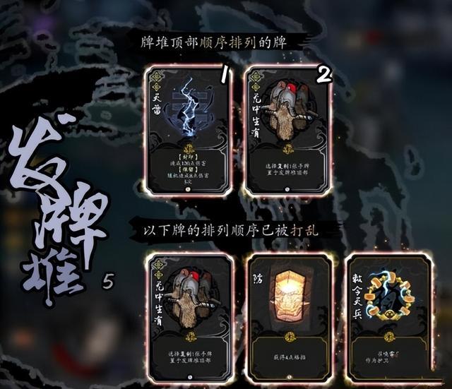 此外,【无中生有】具备将牌复制到牌顶堆这一特性,它与【道破天机】能够实现良好的兼容。你完全可以先通过【无中生有】复制手中的天雷,接着利用【道破天机】直接猜测天雷。