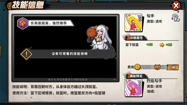 [纵跳篮板]:防守类型,增加起跳高度,全力将篮板球抢下,打击对方士气。