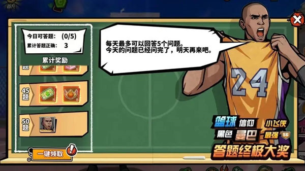 哇塞!直接免费送超酷传奇球员啦!参与答题就能把传奇 SG 球员“小飞侠”带回家!只要完成答题活动,就能将最终球员大奖收入囊中。而且每天都有五次答题机会哦,要是答对一定数量的题目,还能拿到“夺宝紫晶券、时装盲盒、大师奖章”等超多丰厚奖励!这么棒的福利,你真的不心动来瞧瞧嘛?