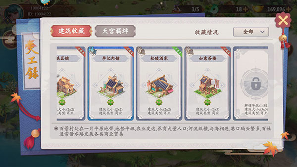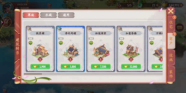 游戏内包含上千种美轮美奂的建筑,小到茅屋、茶楼,大到宝塔、宫殿,各色建筑一应俱全,应有尽有。