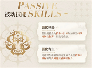 消耗蓝银精魄,对范围内敌方目标造成毒属性伤害,并附加寄生种子。寄生种子积攒到一定层数将引爆,造成毒属性伤害并眩晕目标。