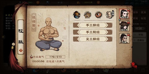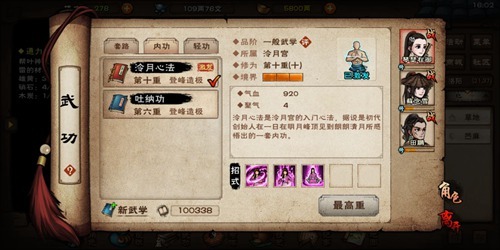 内功主要增加人物的气血与聚气速度