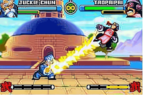第8关(海边龟屋)龟仙人训练悟空在格斗模式的对战。