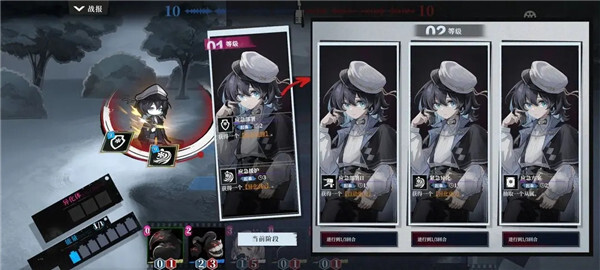 再点击从属右下角的升星(上图红色方框),即可使该从属的携带数增加(最多三张)。在粉色方框中可以看到目前升星情况:前三格为携带数,最后一格升星为立绘变化。